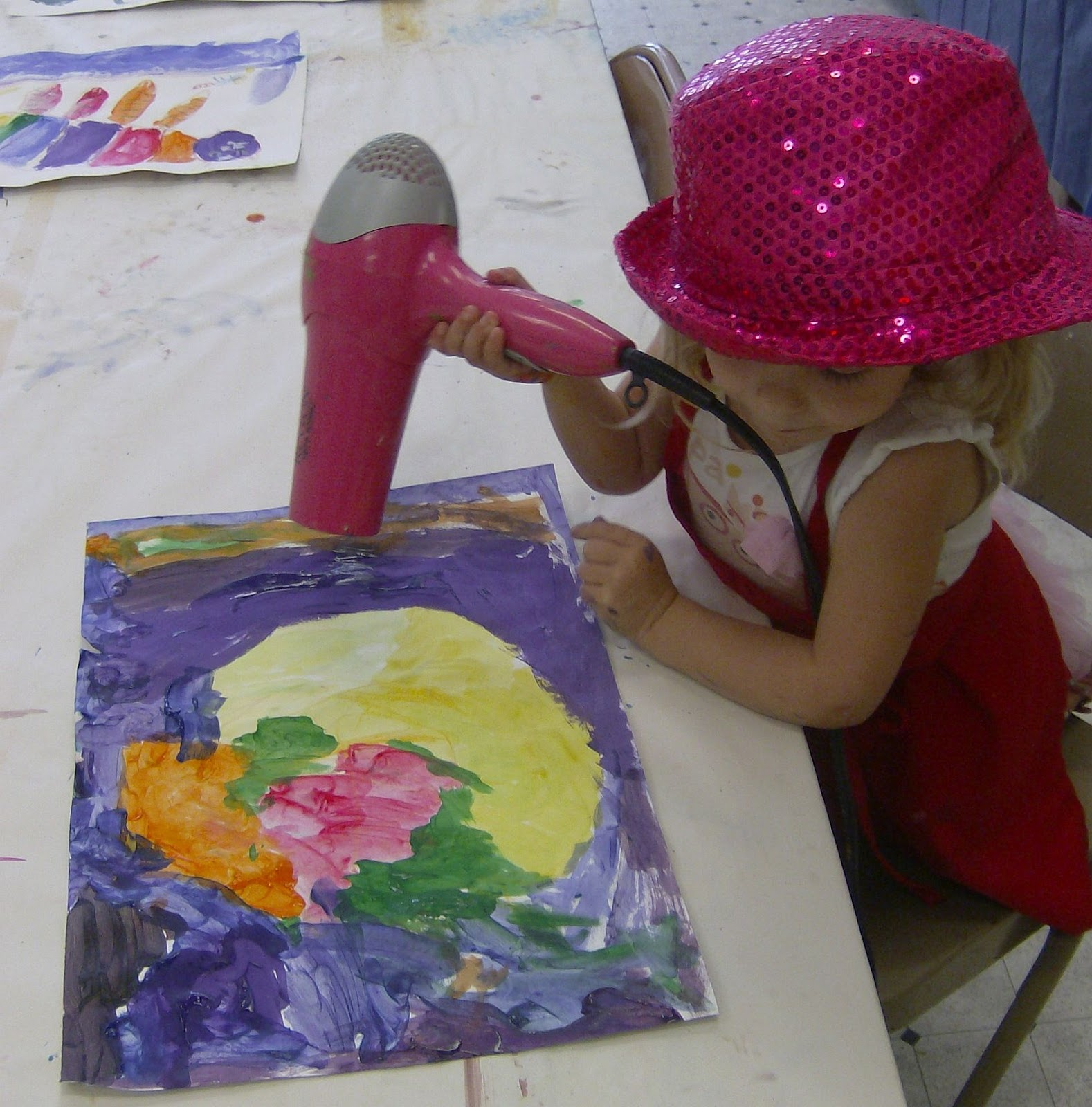 Then we painted in our kitties with thick liquid tempera paint. The final step was to blow dry them because the blow dryer is fun!