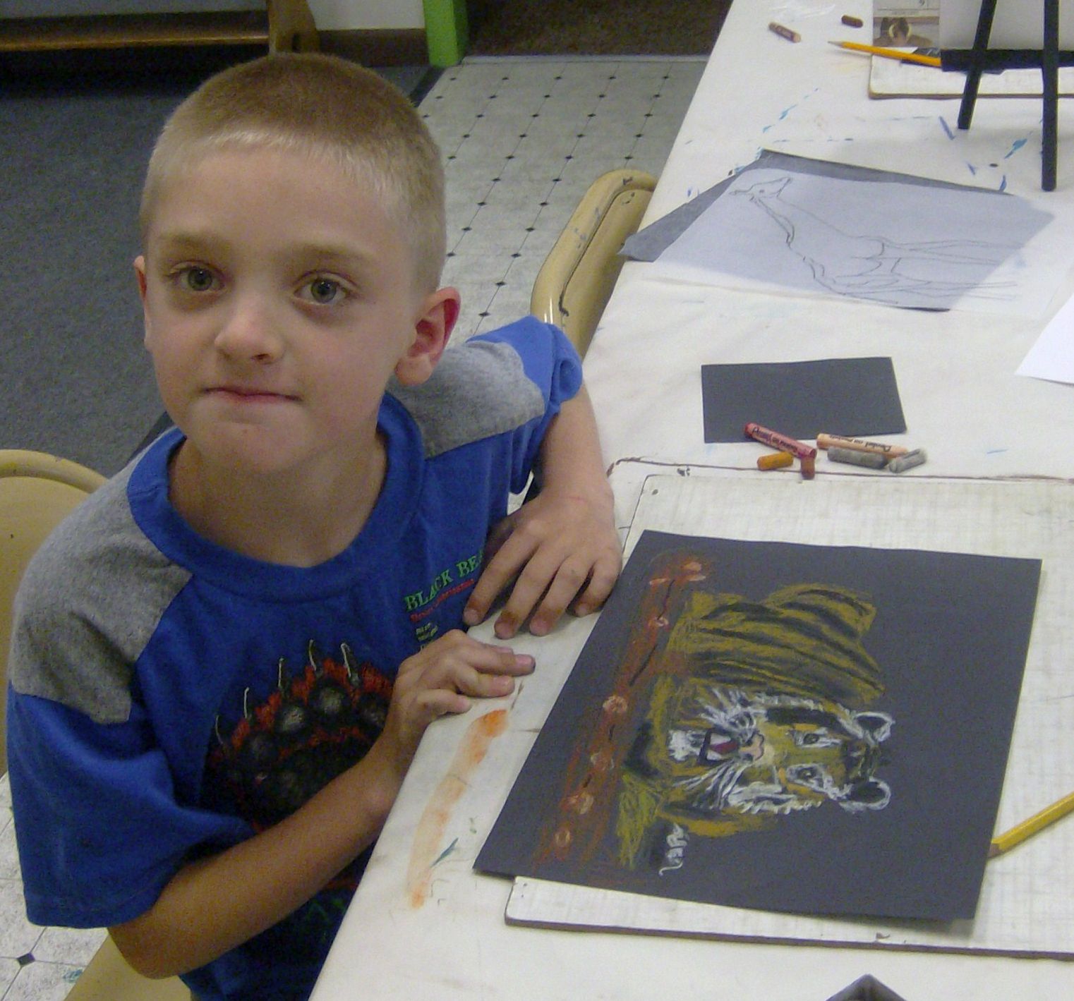 Always a favorite at the Blackfoot Art Center, we completed this project for our last class of the school year and by request: oil pastel animals on black paper.